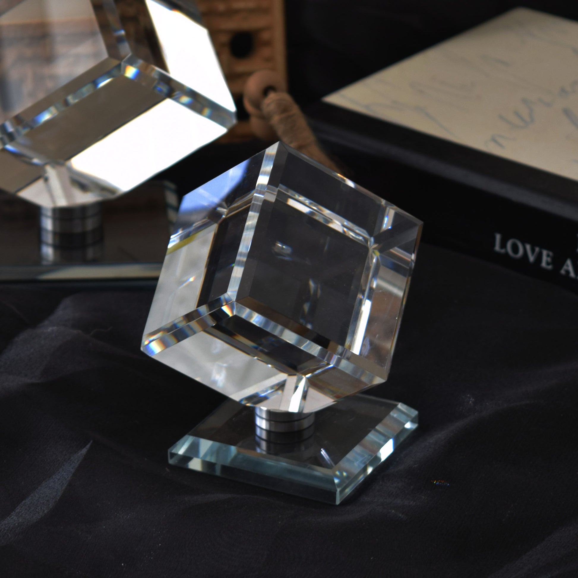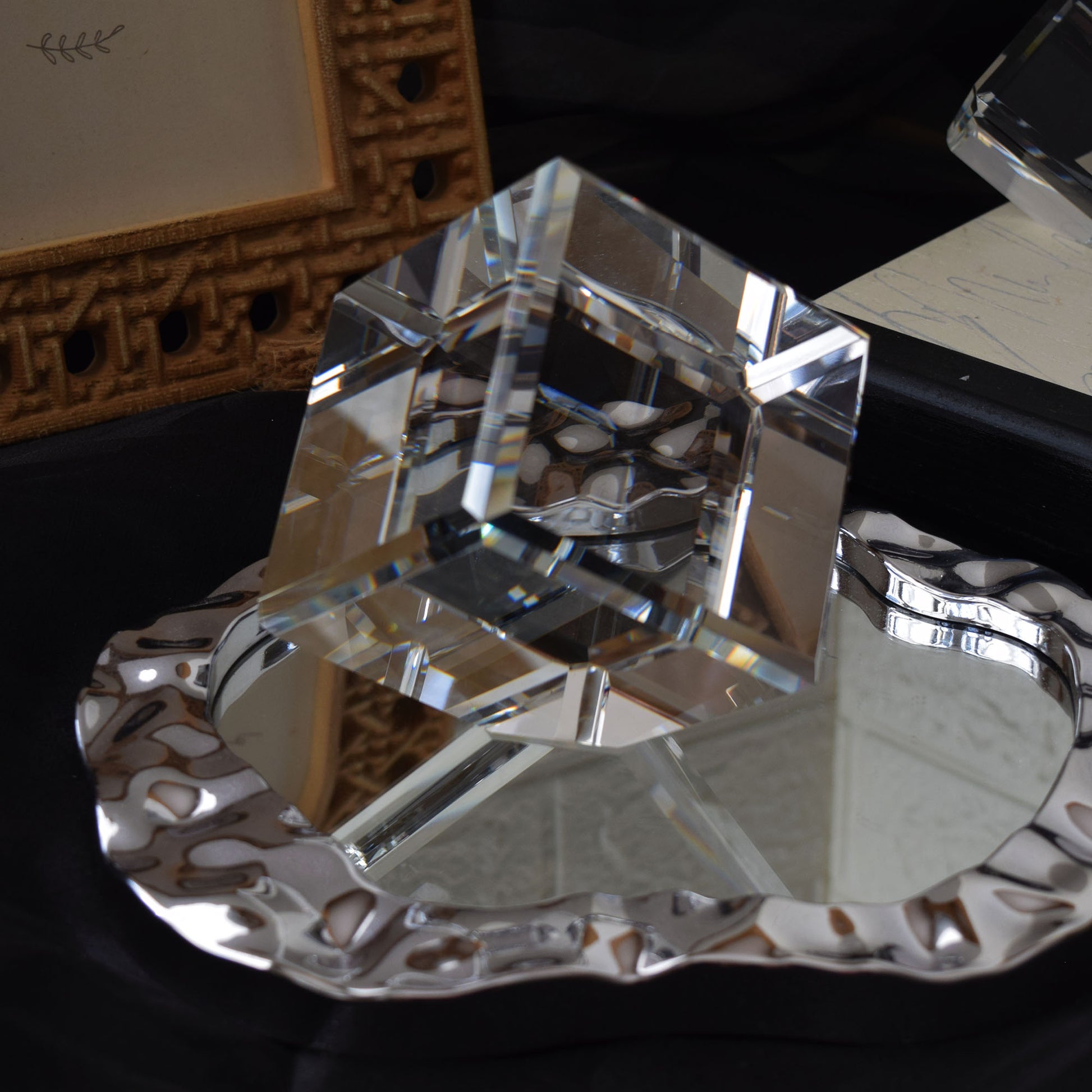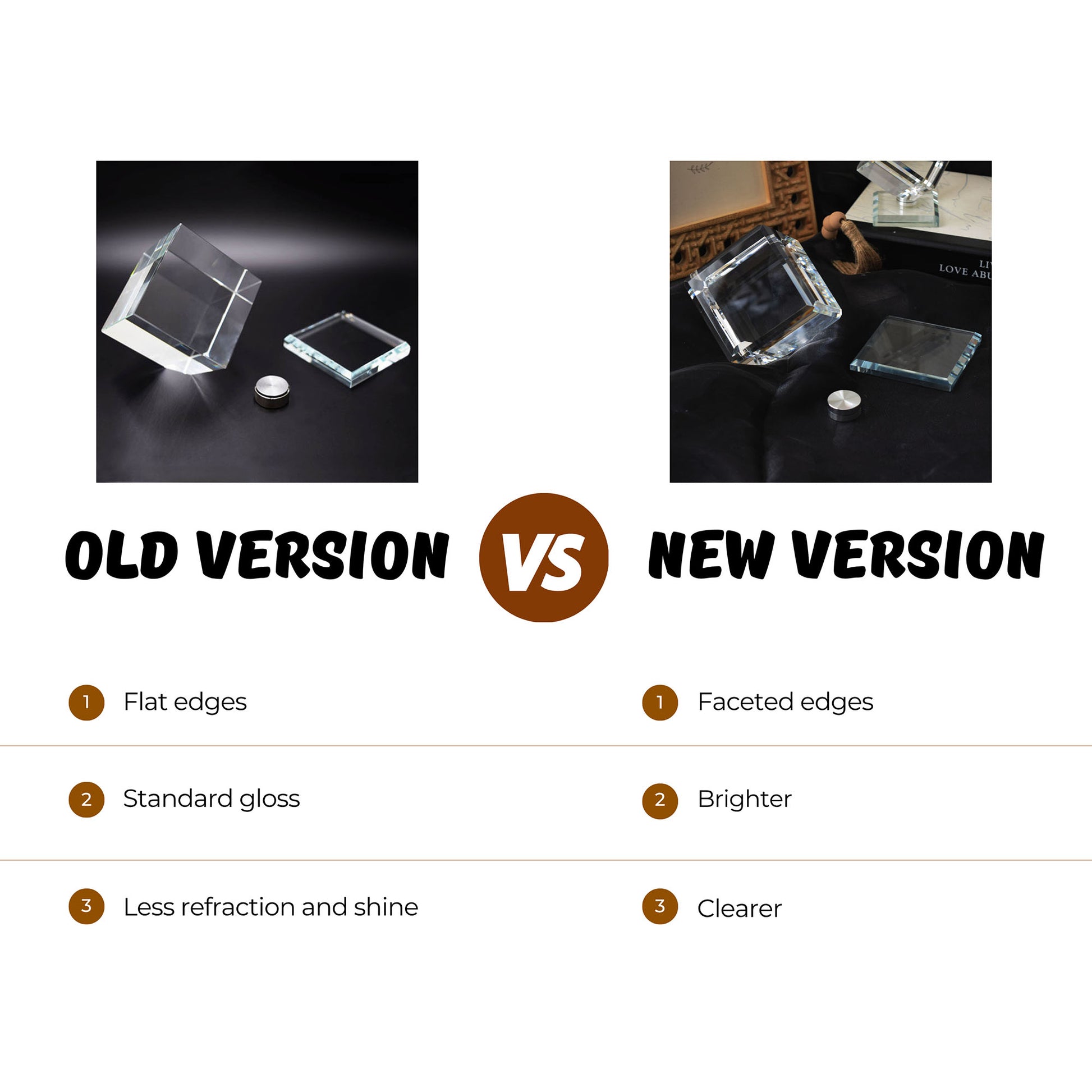 This Blank Crystal Cube is made from high-clarity Beveled optical crystal, beautifully polished on every side. It’s perfect for DIY engraving, photo props, product display, or home decoration. Each cube reflects light elegantly — even without customization — and pairs beautifully with our rotating base for a more dynamic presentation.