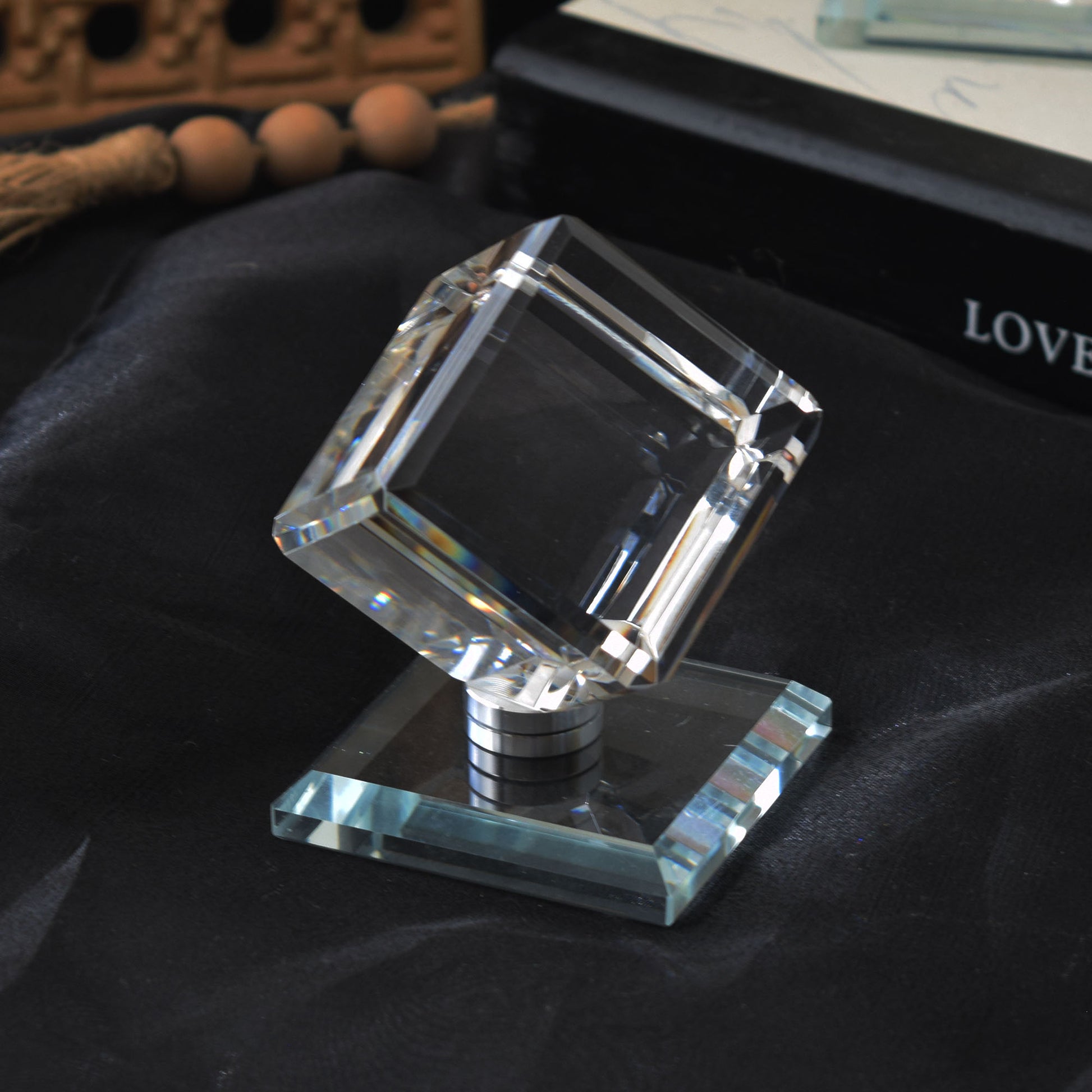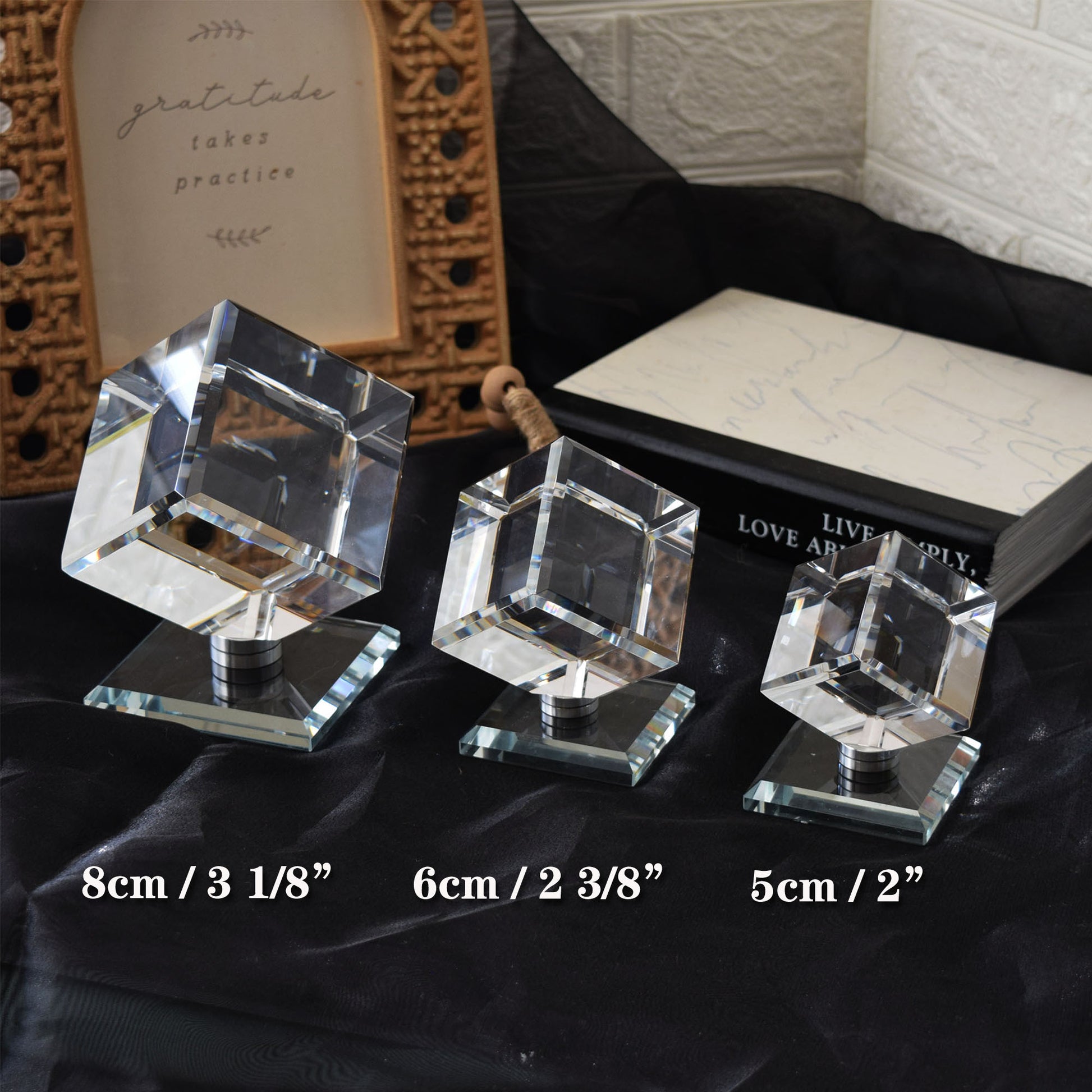 Blank Crystal Cube, Beveled Optical Clear Display Cube Only or with Rotating Base